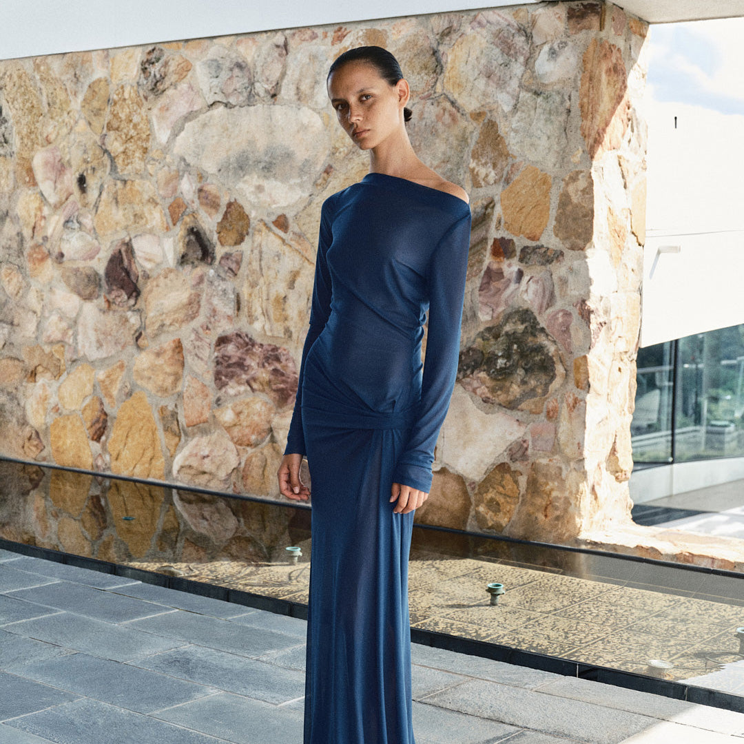 BRIGITTE COWL NECK MAXI DRESS - STEEL BLUE