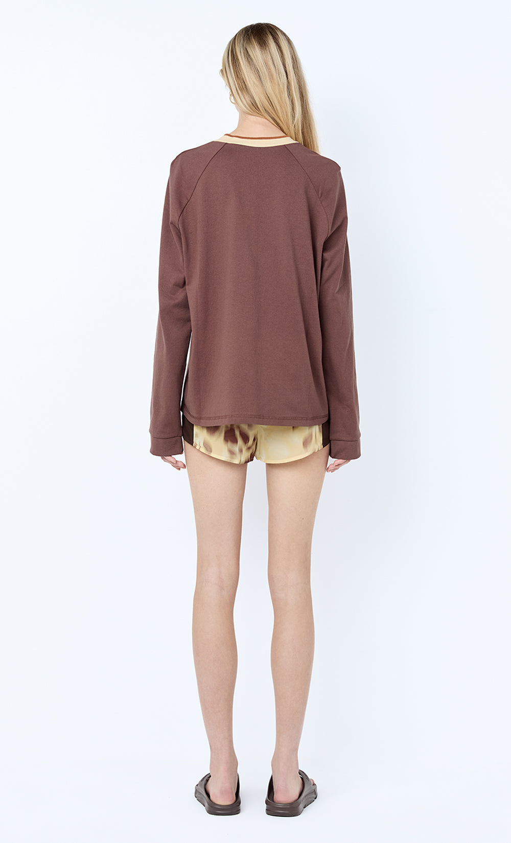 Contrast dark choc silk viscose CDC panels at side seam