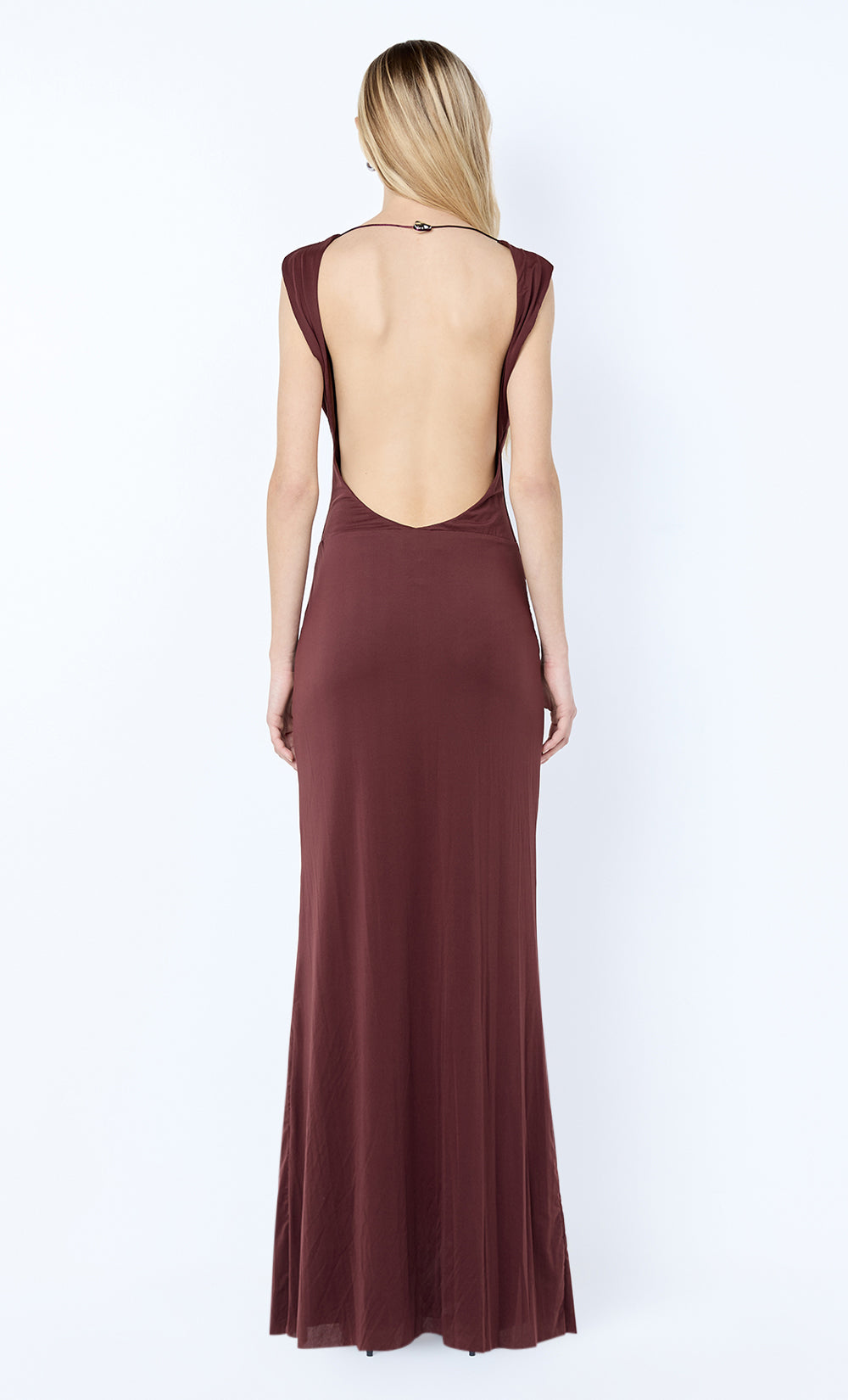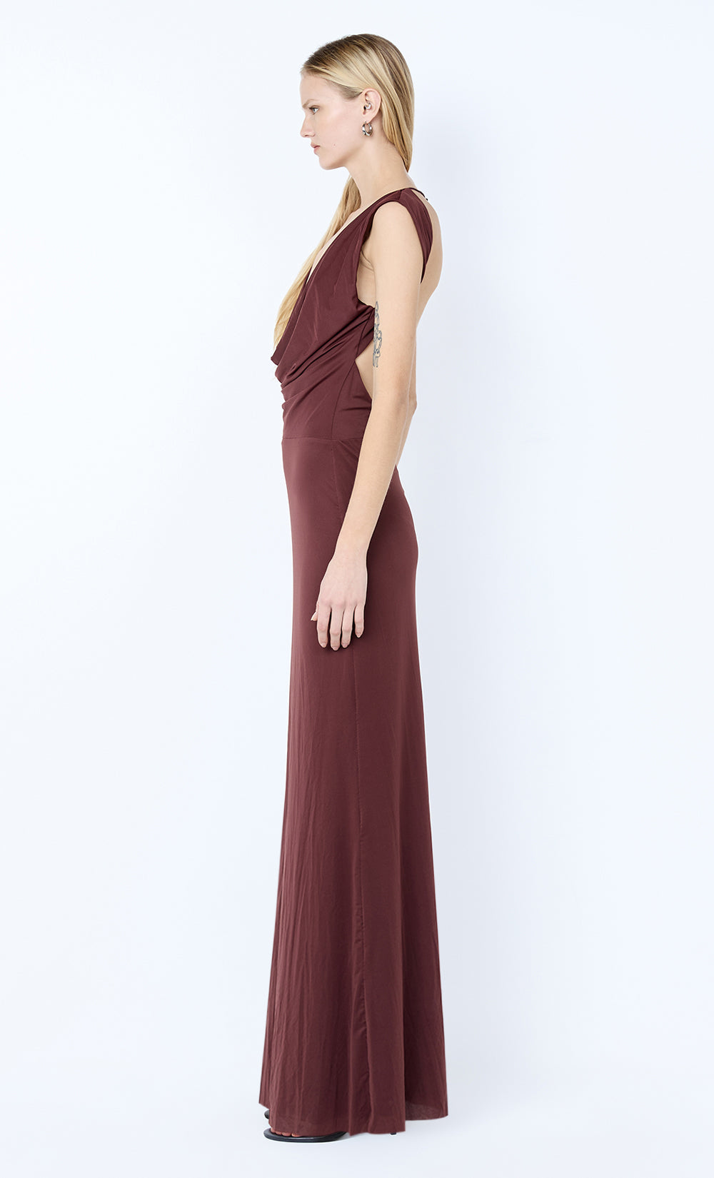 Brigitte Cowl Maxi Dress in Blackberry. An elegant, backless maxi dress perfect for elevated evening styling or glamorous black tie events.