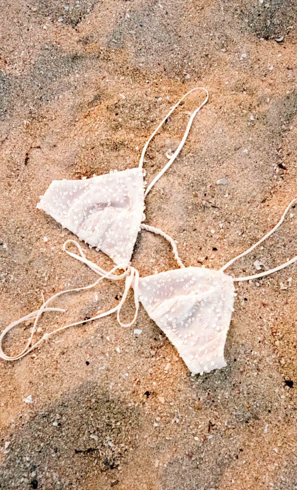 Edith Bralette in Buttercream. This dazzling triangle bralette, crafted from specialty sequin fabric with thin satin straps, is perfect for a glamorous night out or elevated holiday styling.