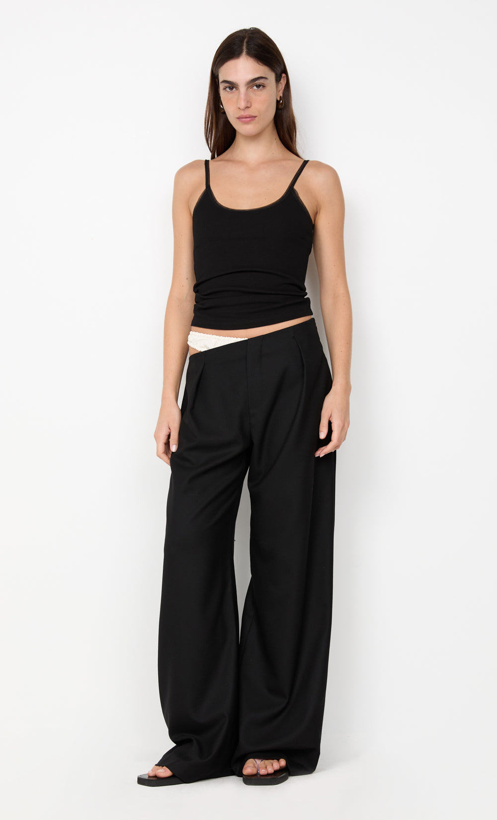 Emerson Tank in Black. This chic rib scoop tank, with its sheer tulle edging and a body hugging fit, is perfect for an elevated everyday look.