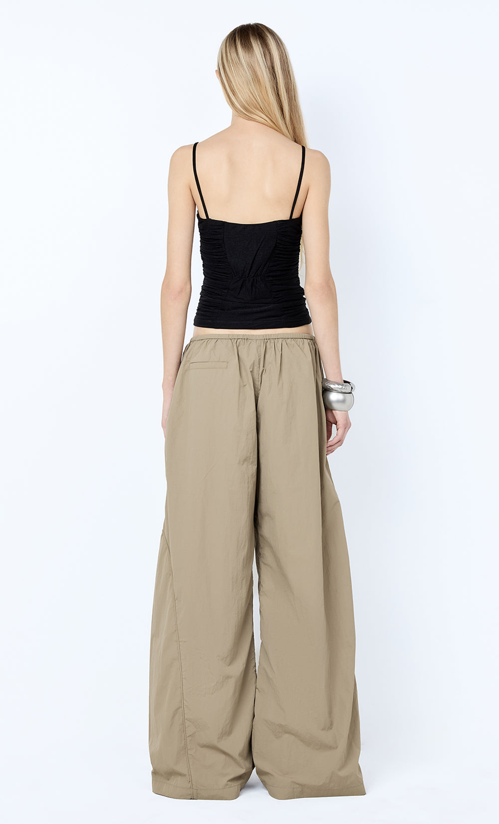 Bastien Pant in Taupe. A sporty wide-leg pant with clean piping details and a relaxed, modern feel. Ideal for everyday wear, office days, or elevated styling.
