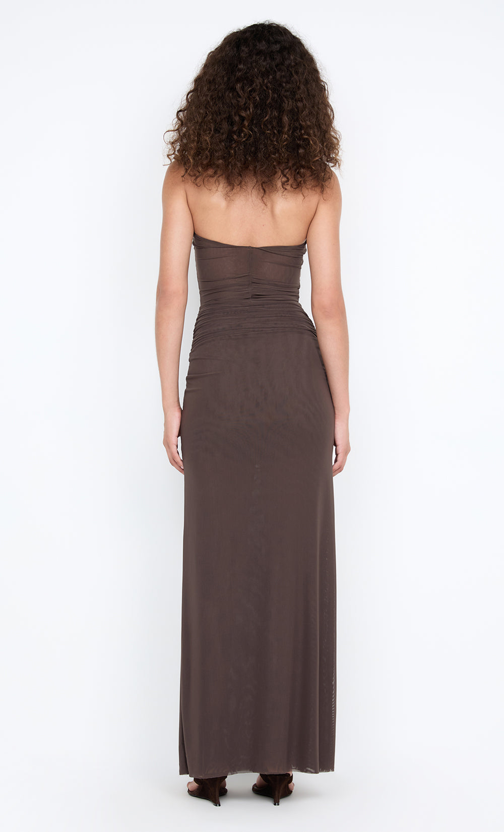 This elegant strapless maxi dress is an ideal choice for prom season, a wedding guest dress, or any special event