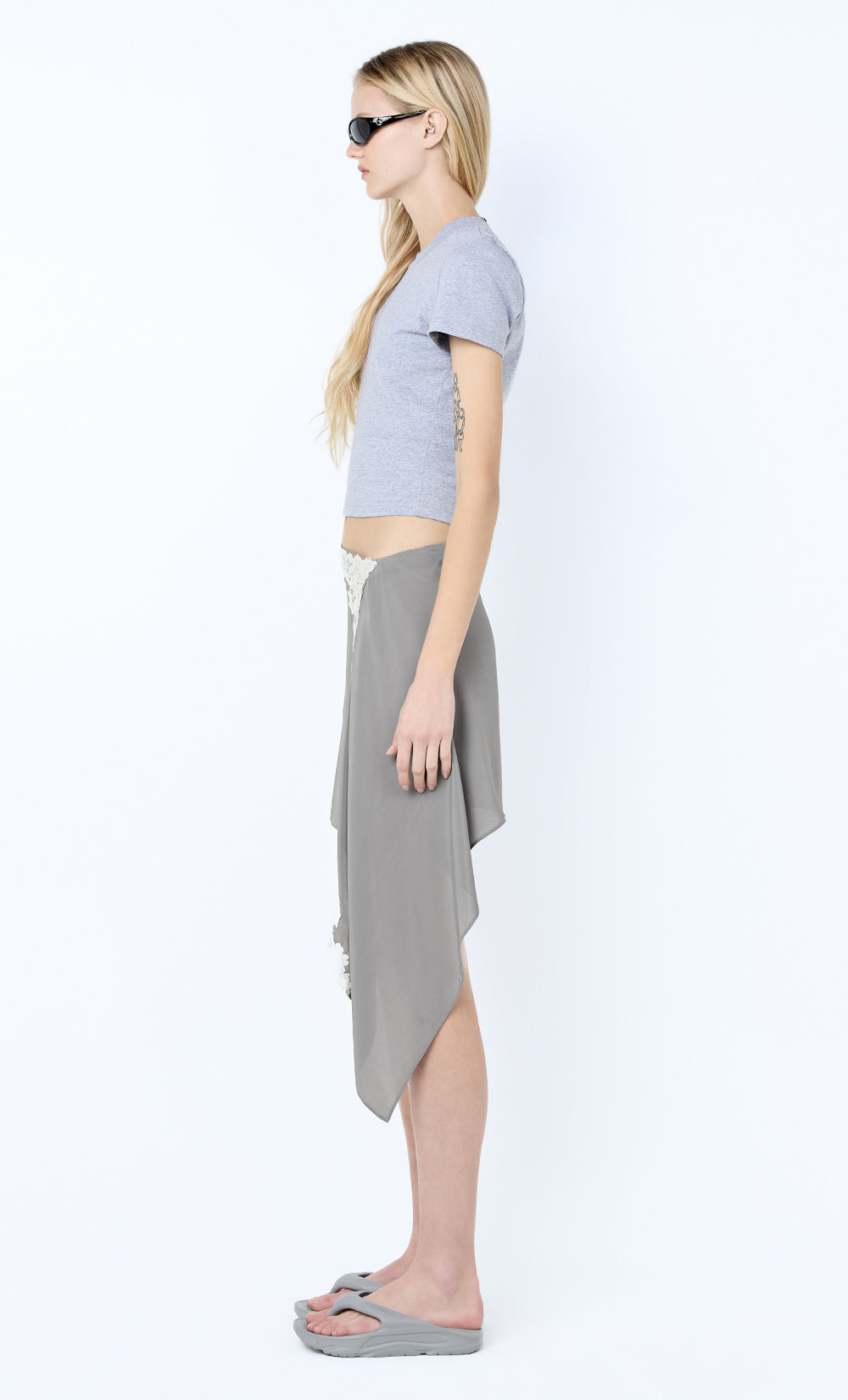 Claudette Baby Tee in Grey Marle. A classic grey tee perfect for elevated daywear or casual styling.