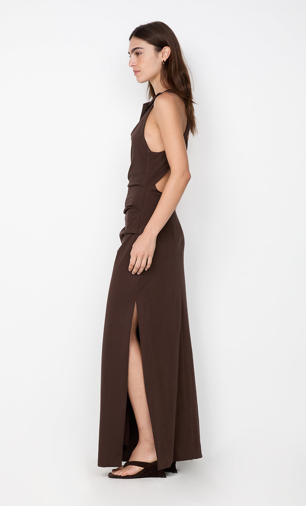 Annetta Cowl Neck Maxi Dress in Dark Chocolate