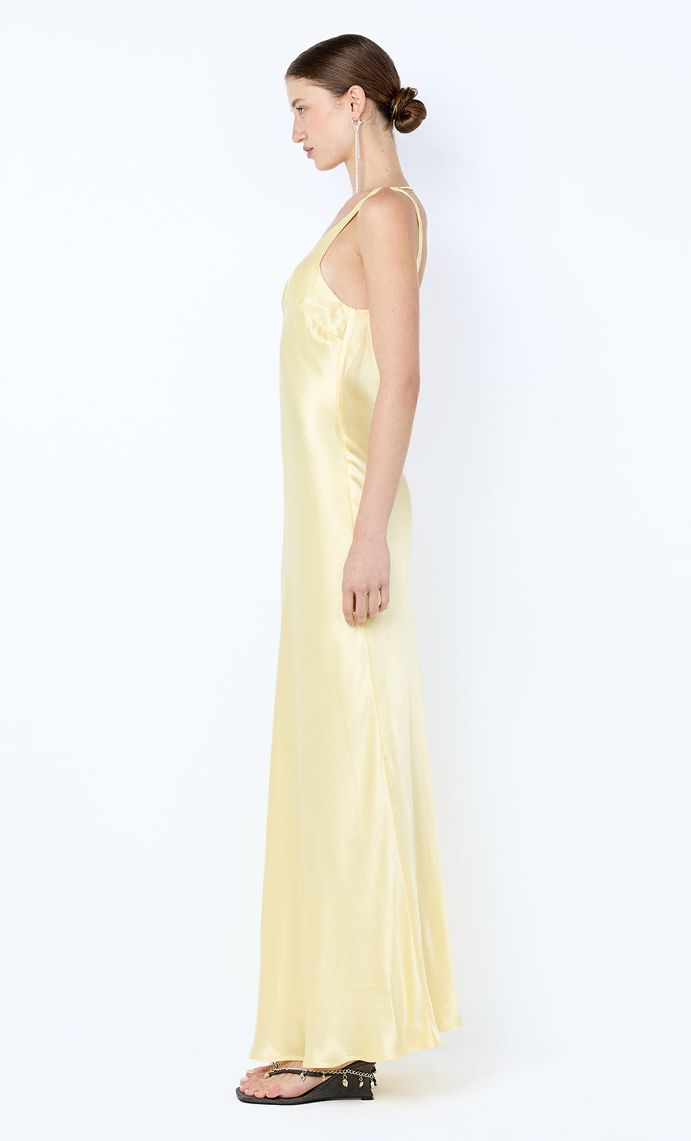 Florence V Neck Maxi Dress in Citron. A vibrant yellow maxi dress perfect for summer weddings, garden parties or resort events.